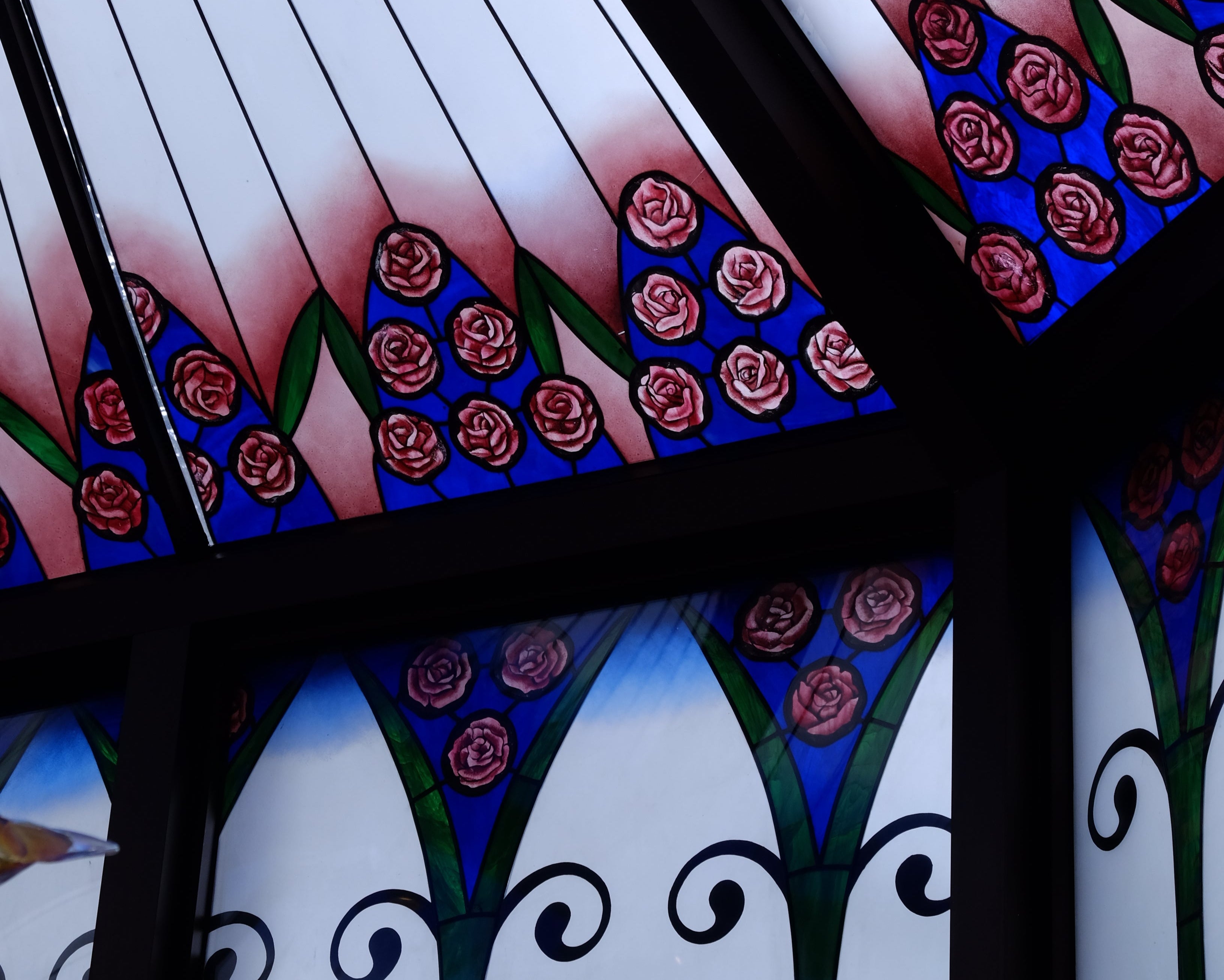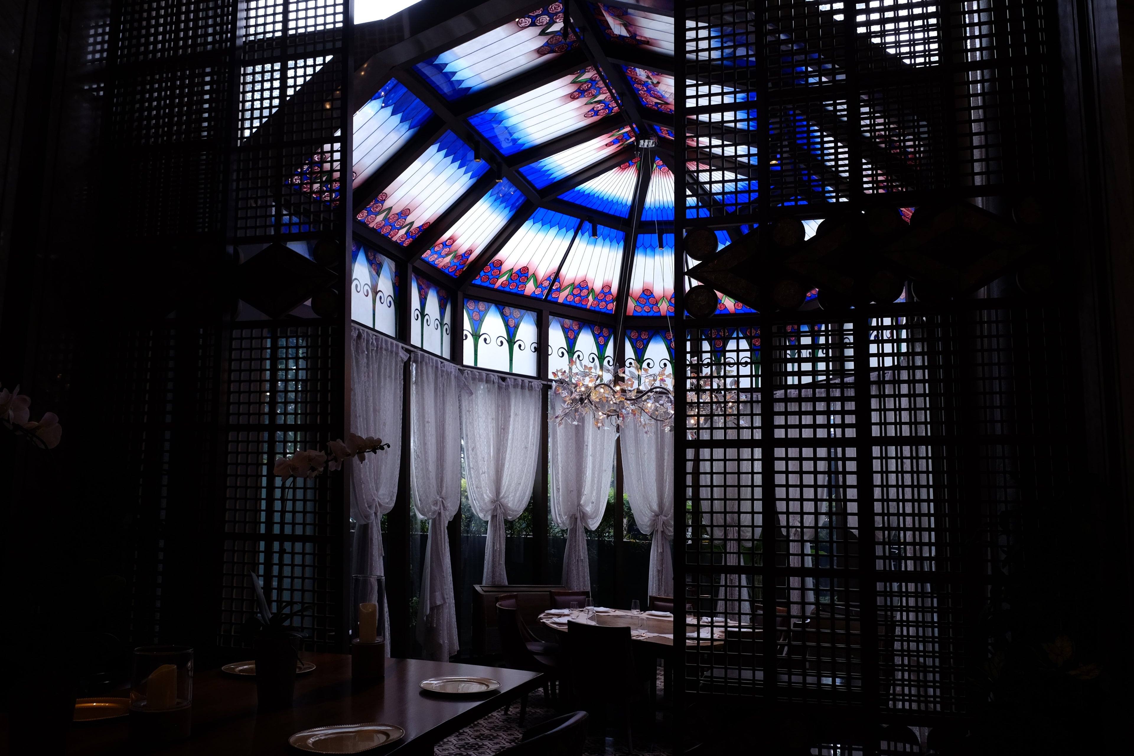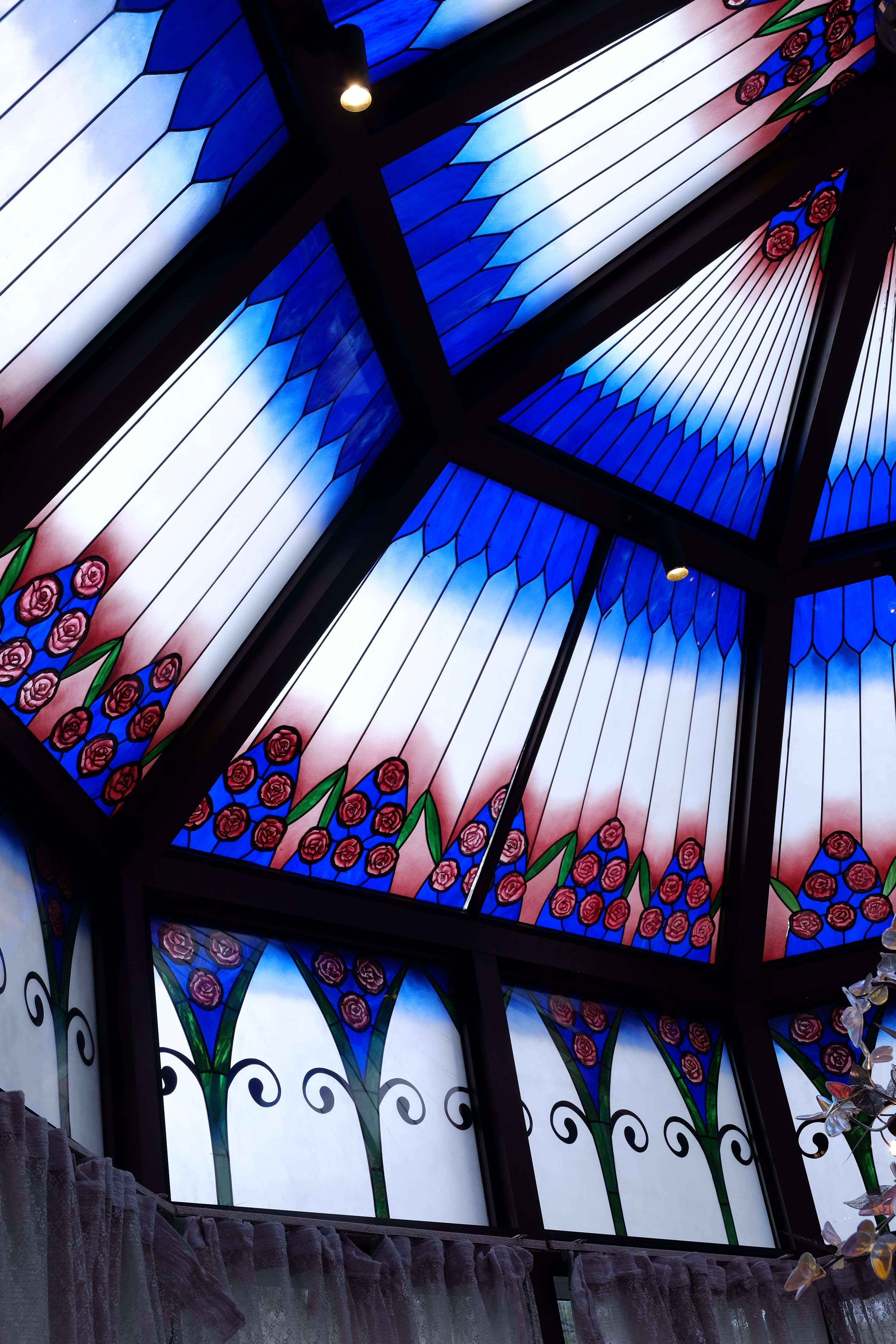 Named La Cupula, the private dining area at Casa Buena located in Newport World Resorts features an array of roses set against panels of royal blue and white, hand-stained gradients by our artisans.