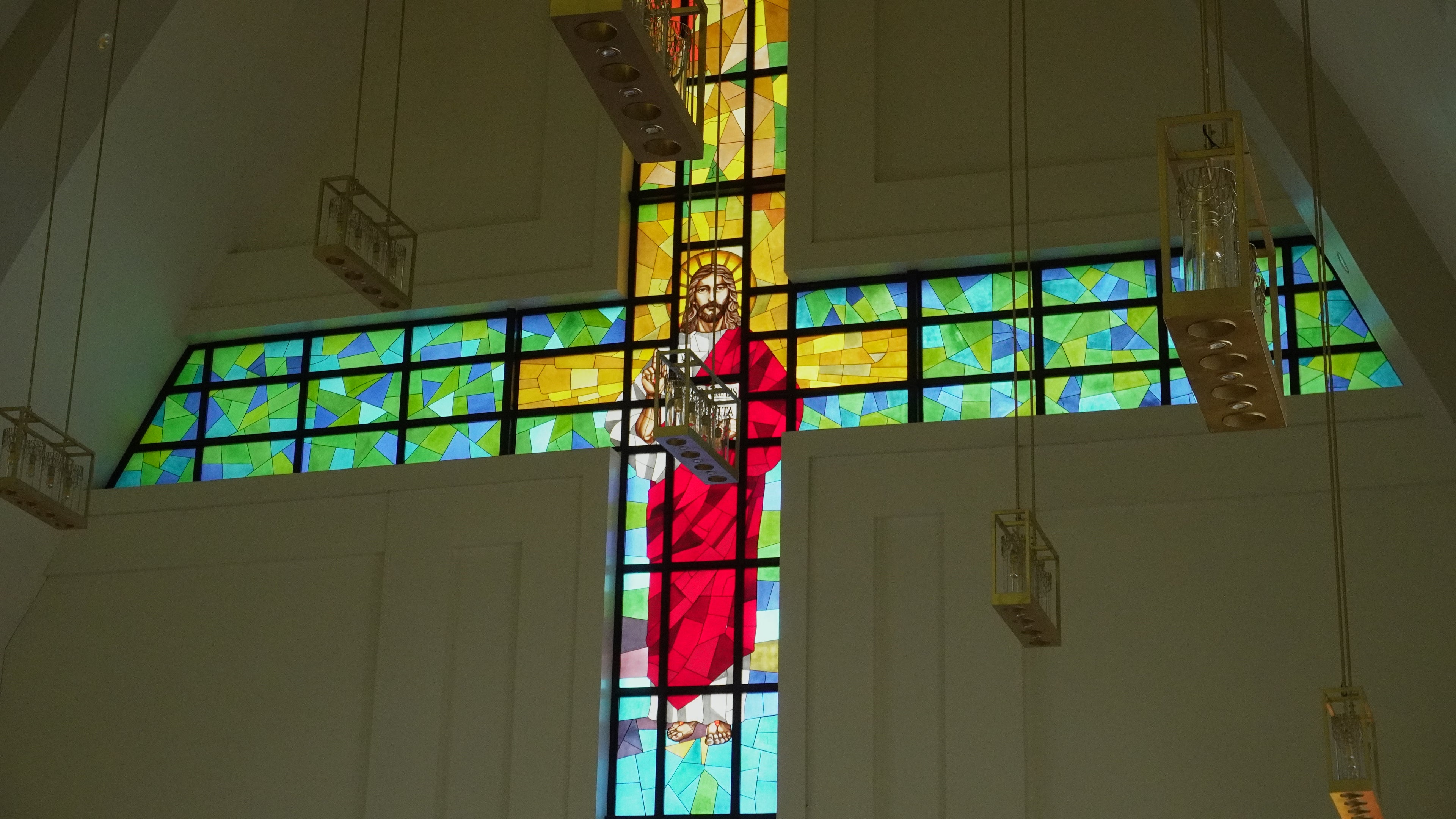 Located in Aseana city, one of our biggest projects yet: a stained glass cross measuring 23 x 14 meters featuring abstract renders of a rise Christ, the Holy Spirit, and the Philippine islands.